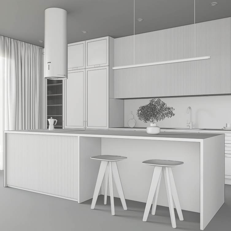 6.5 Modelowanie blend, uchwytów, wyspy stropu i dodanie sprzętów