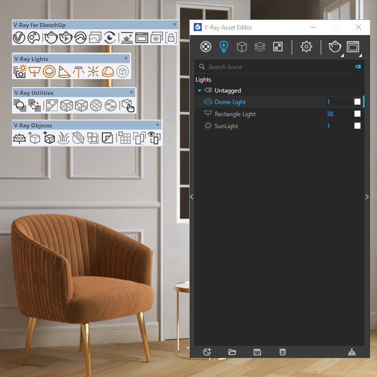 2.3. Omówienie ikonek V-Ray i Asset Editora