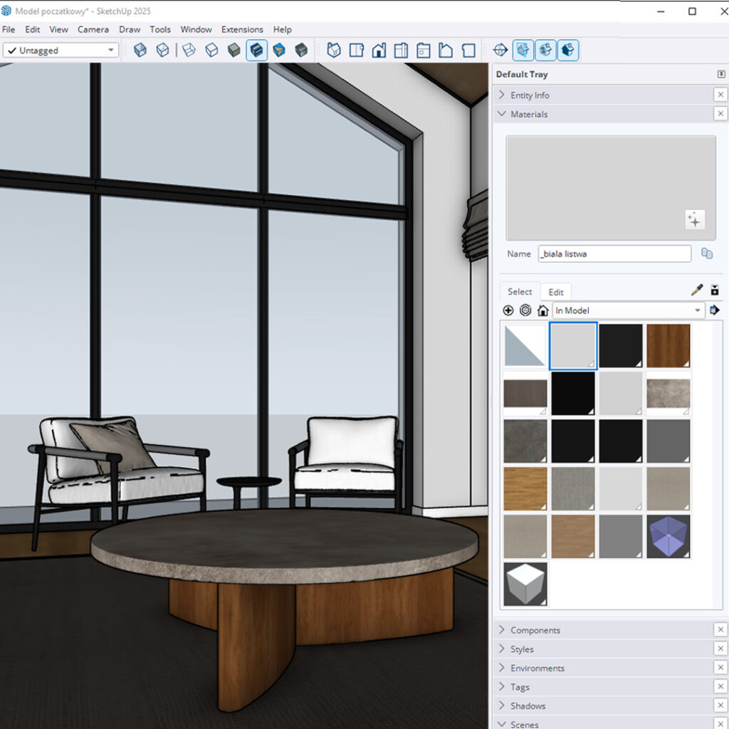 Dowiesz się, jak budować model w SketchUpie tak, aby był czysty, uporządkowany i gotowy do renderowania.
