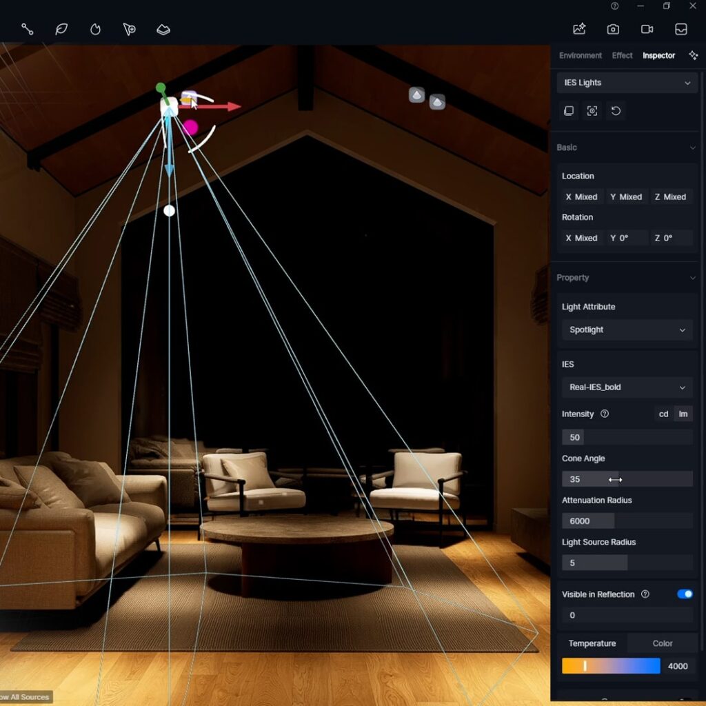 Wykorzystamy mapy HDRI do naturalnego oświetlenia sceny oraz Spot Light z plikami IES, by uzyskać efekt punktowego światła sztucznego.