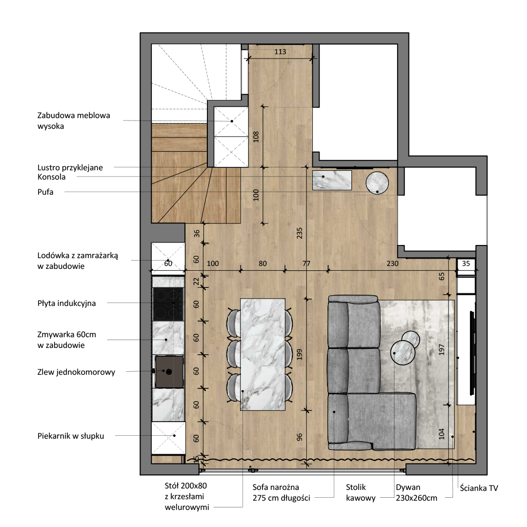 8. RZUT MEBLI NA WYMIAR W SKALI 1:50